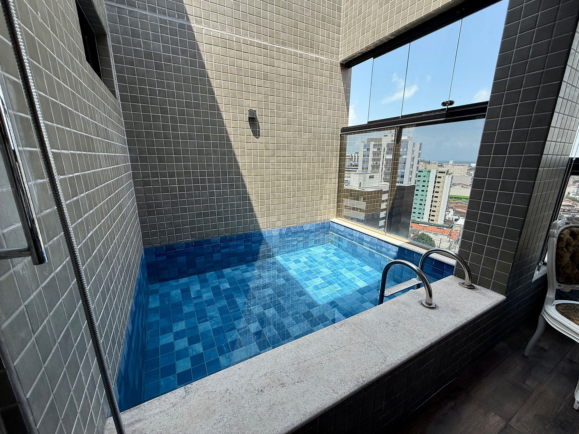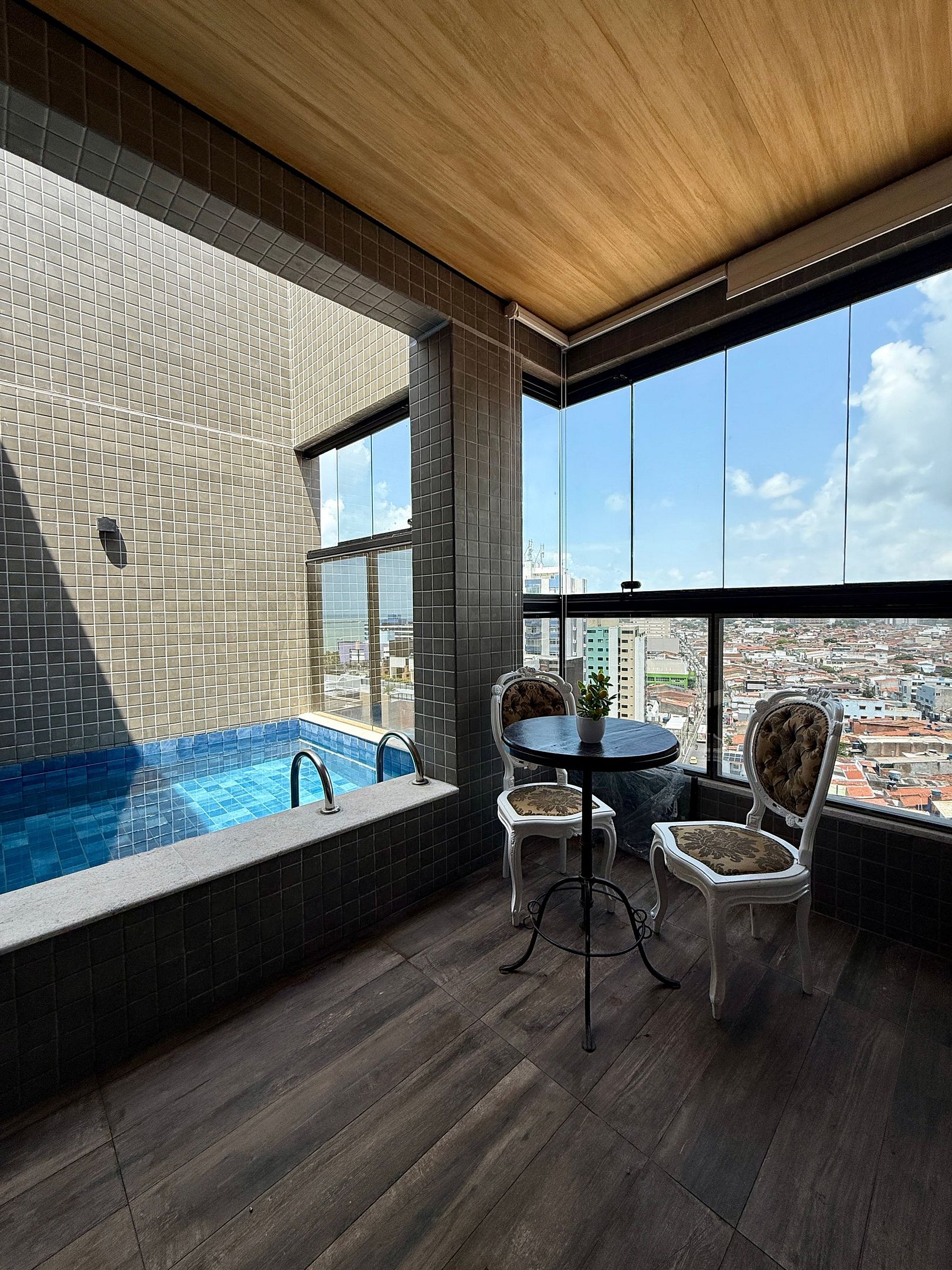 Piscina Privativa na cobertura com mesa e duas cadeiras