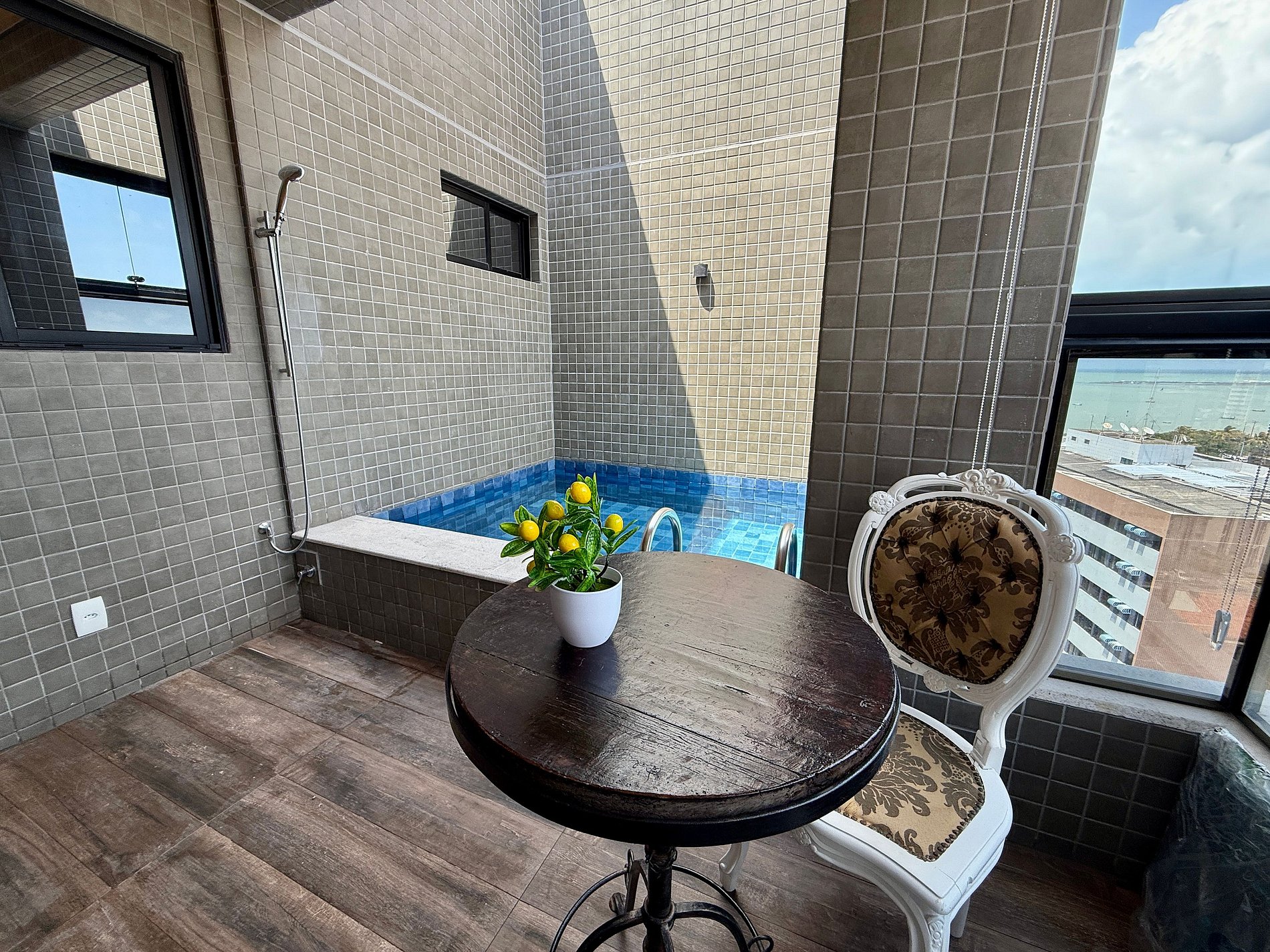 Piscina Privativa na cobertura com mesa e duas cadeiras