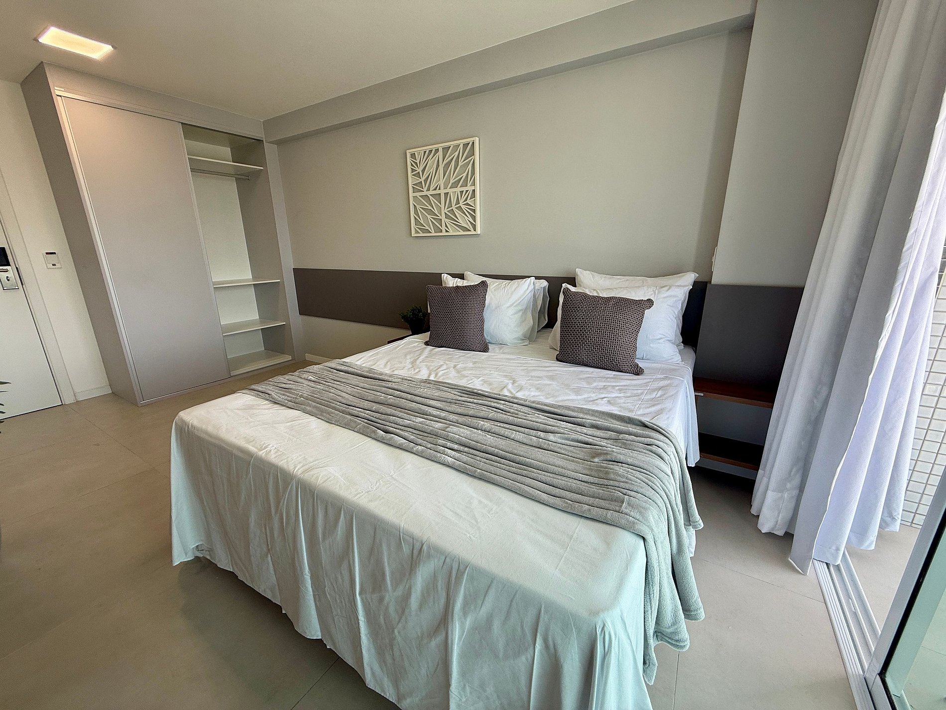O acesso ao apartamento é feito por cartão eletrônico, garantindo praticidade e segurança. O cartão será disponibilizado na recepção após a confirmação dos dados dos hóspedes.