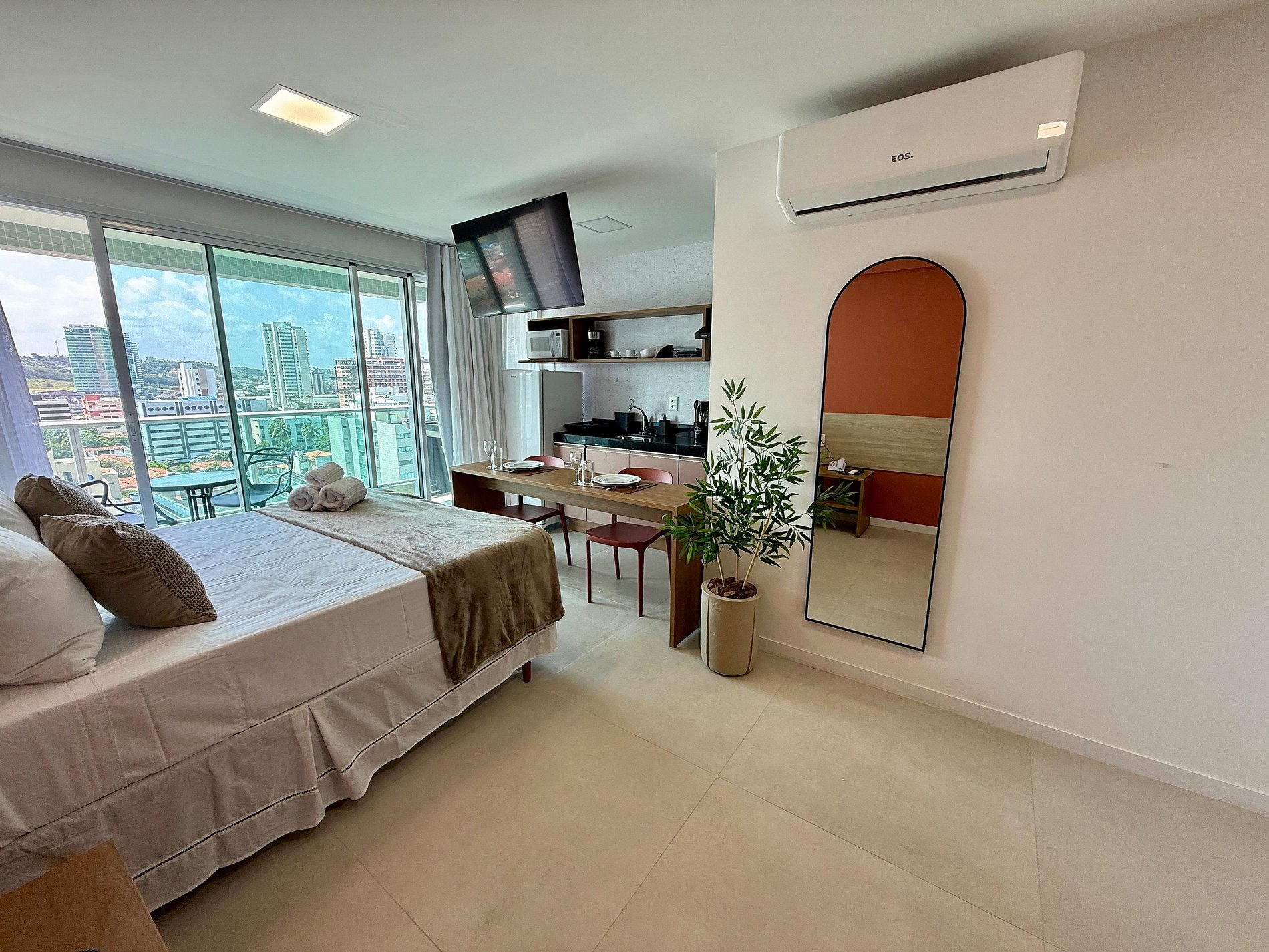 Desfrute de uma estadia moderna e aconchegante no coração da Cruz das almas, uma das praias mais encantadoras de Maceió! Localizado no 9° andar, nosso apartamento tipo quarto e sala foi planejado para oferecer praticidade e bem-estar, com vista urbana e ambiente climatizado.