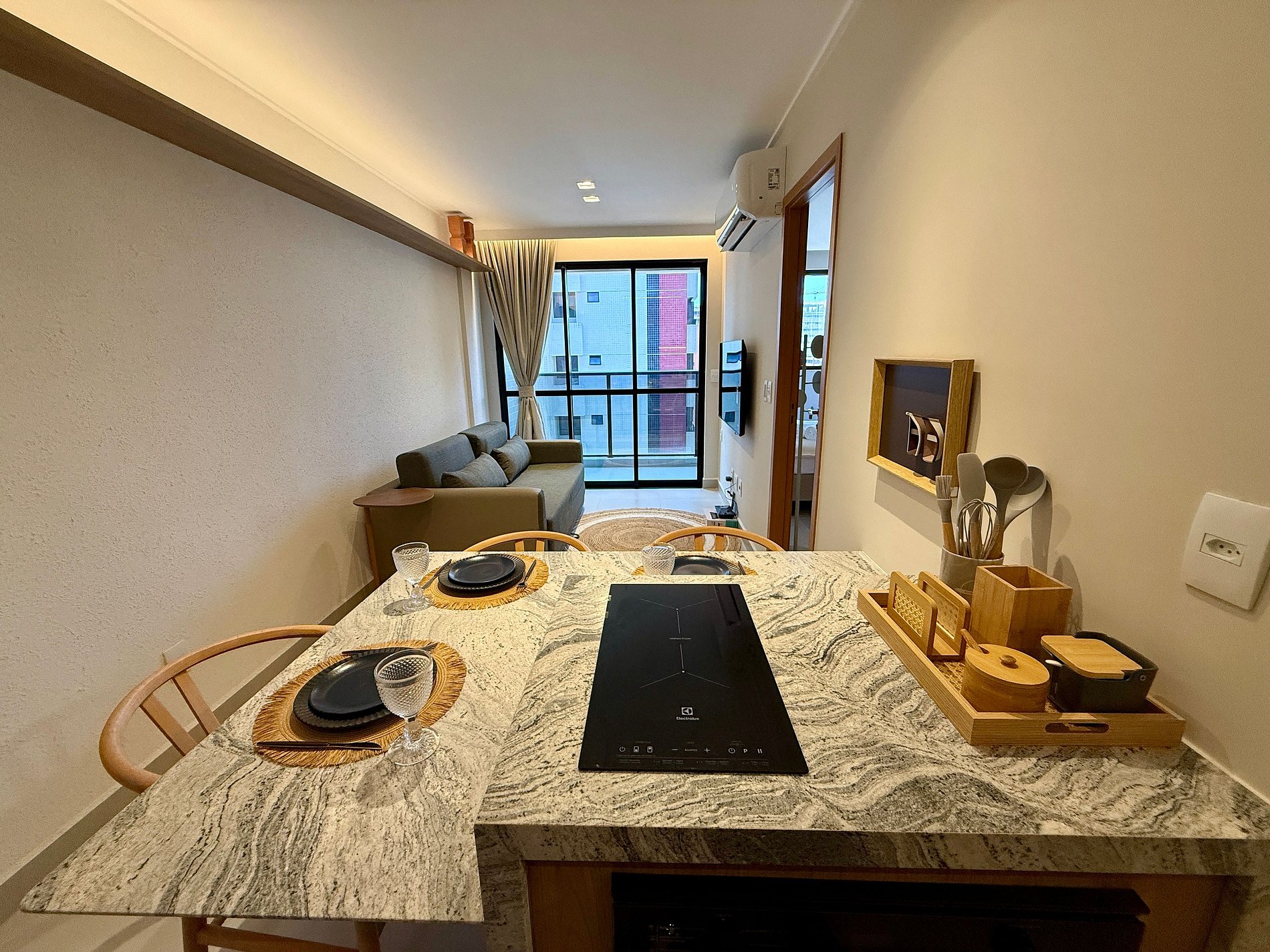 Desfrute de uma estadia moderna e aconchegante no coração da Pajuçara, uma das praias mais encantadoras de Maceió! Localizado no 9º andar, nosso apartamento tipo quarto e sala foi planejado para oferecer praticidade e bem-estar, com vista urbana e ambiente climatizado.