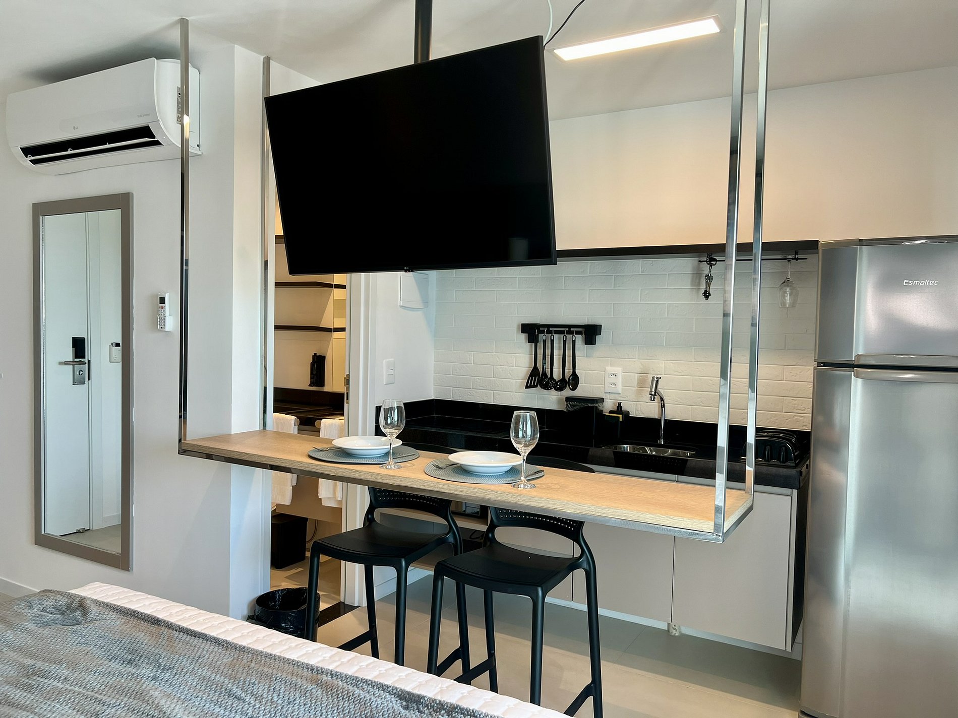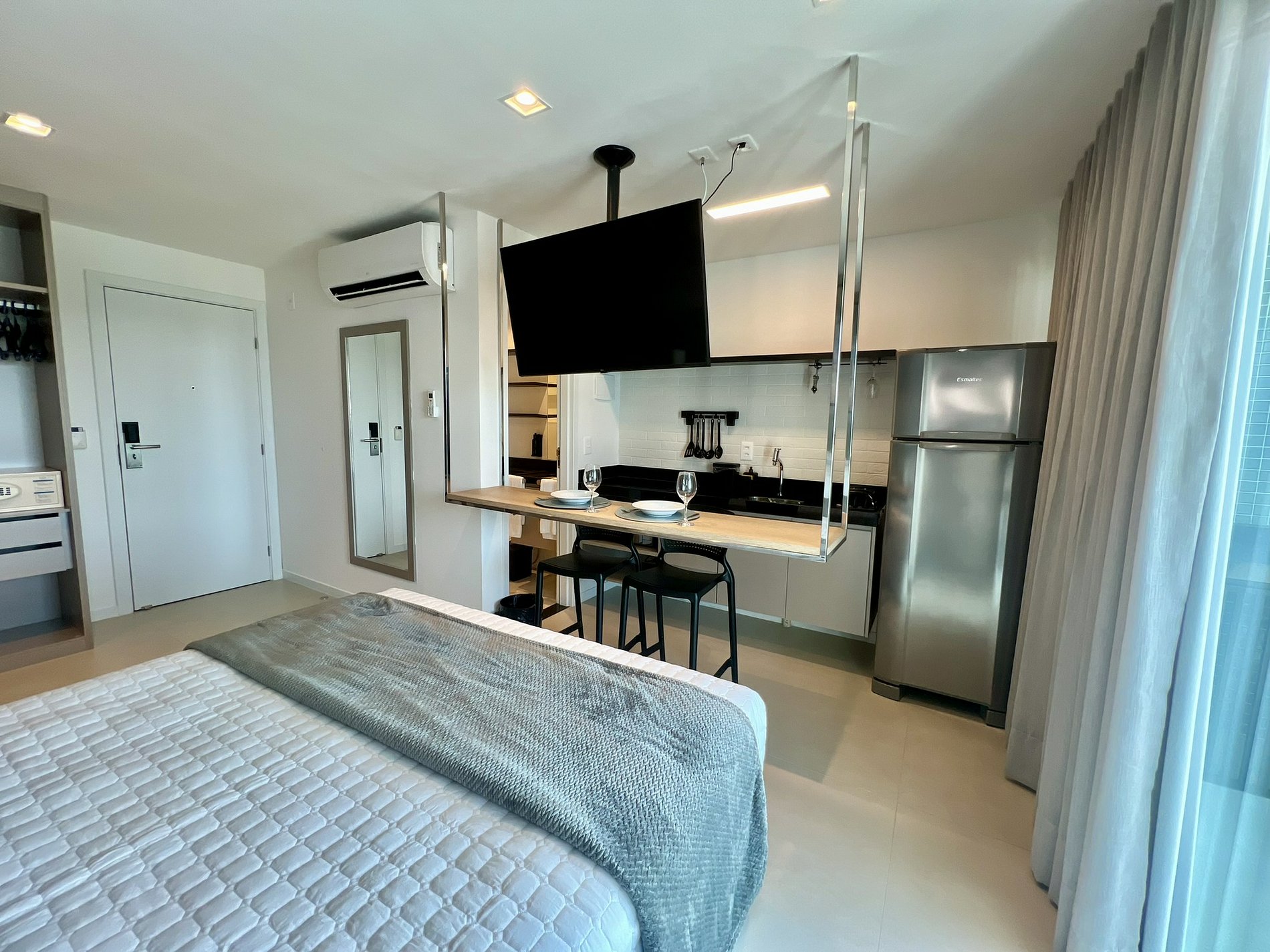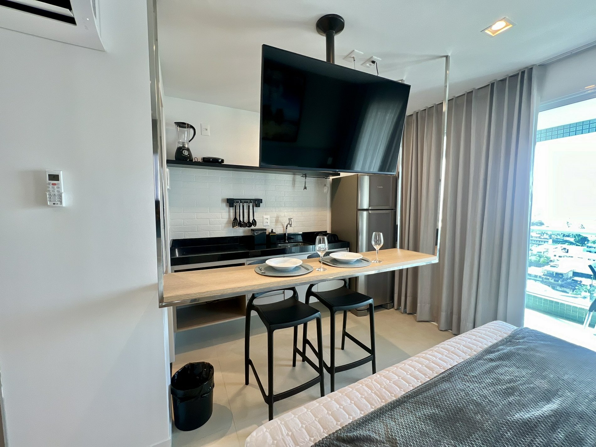 • TV Smart giratória, visível da cama e da cozinha