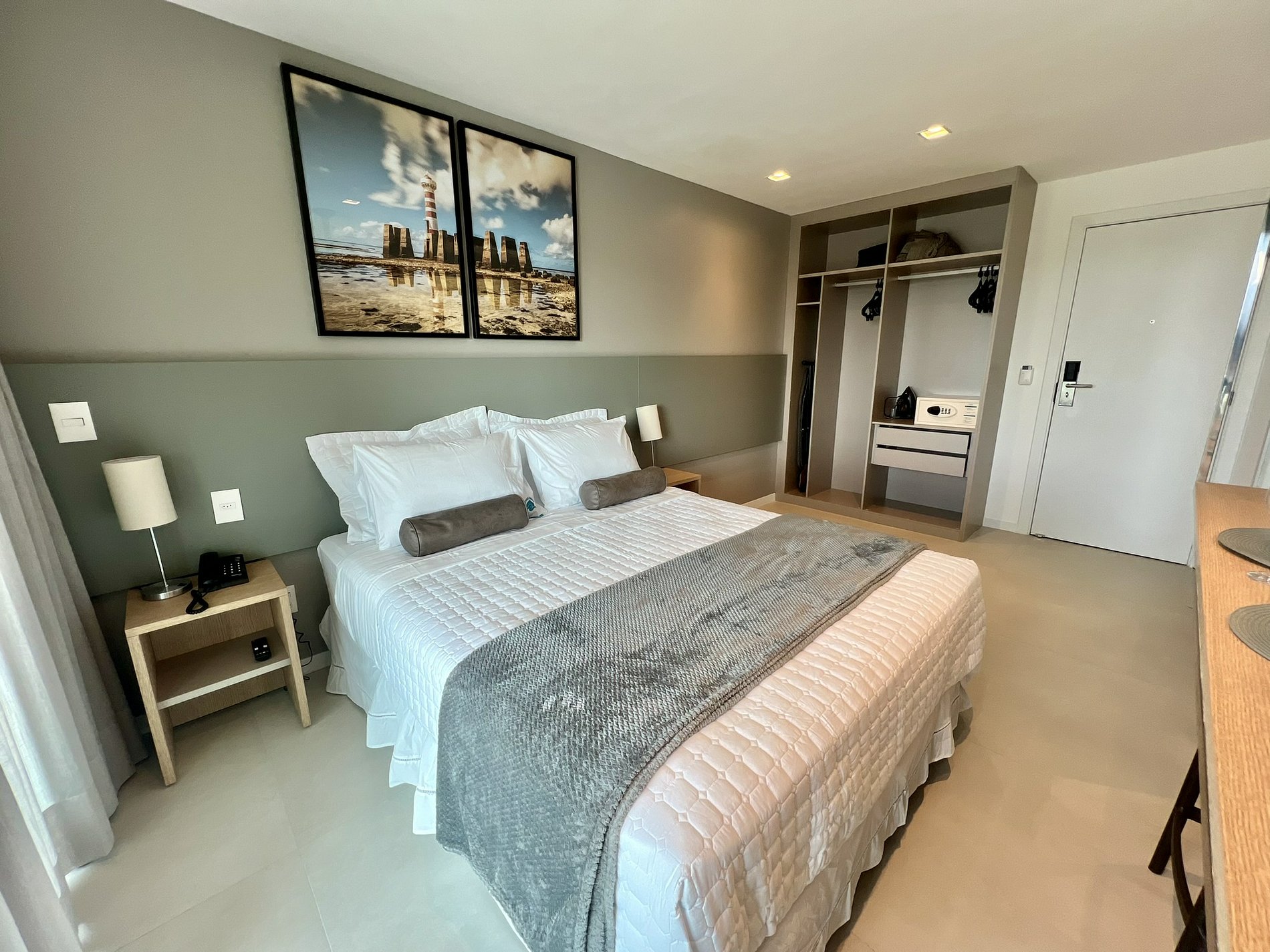 O acesso ao apartamento é feito por cartão eletrônico, garantindo praticidade e segurança. O cartão será disponibilizado na recepção após a confirmação dos dados dos hóspedes.