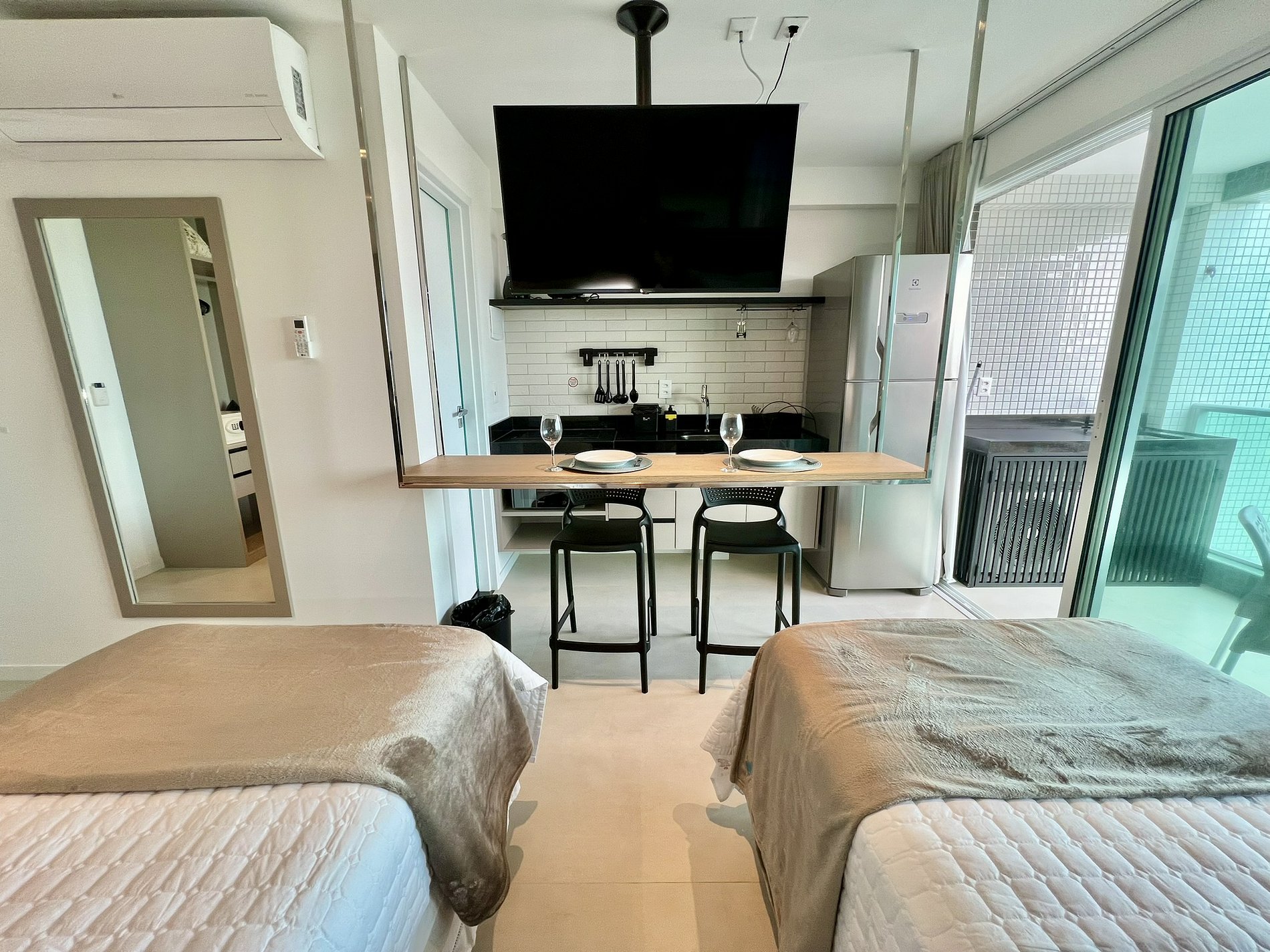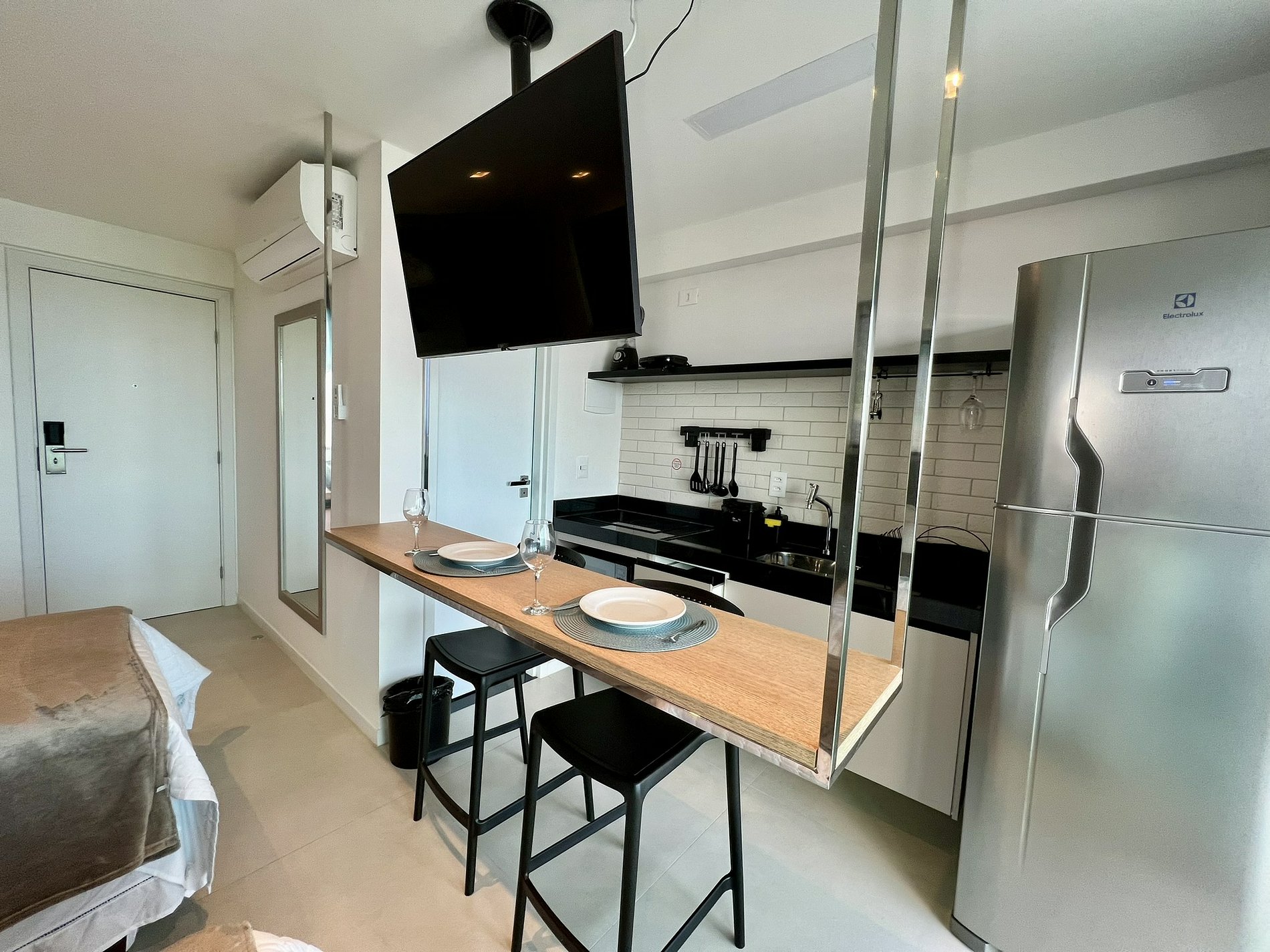 • TV Smart 43 polegadas giratória, visível da cama e da cozinha