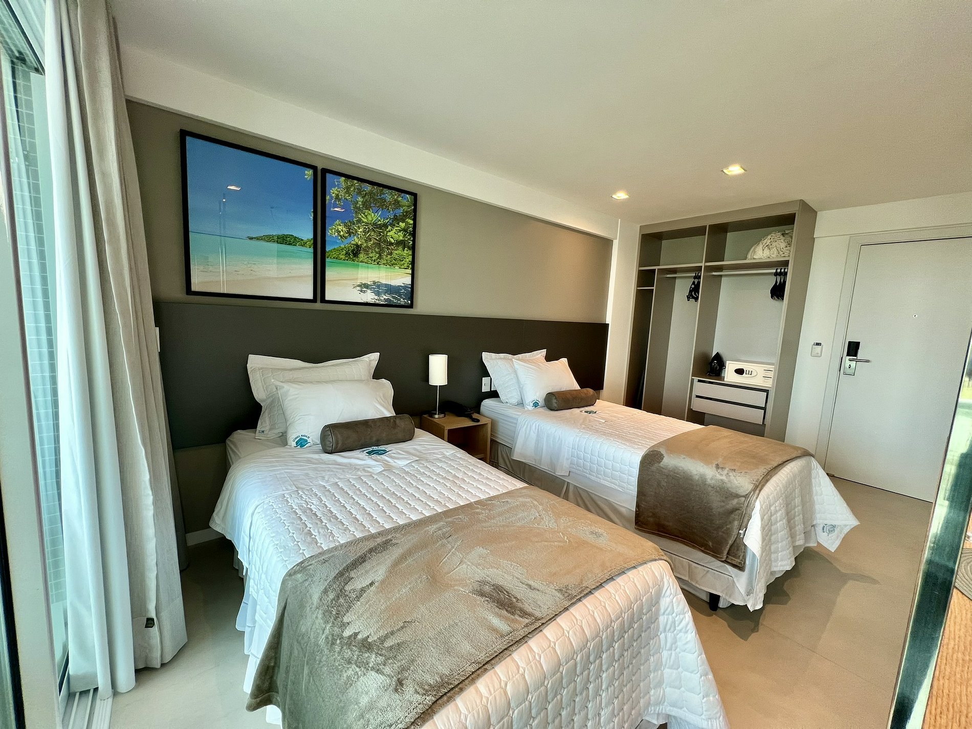 O acesso ao apartamento é feito por cartão eletrônico, garantindo praticidade e segurança. O cartão será disponibilizado na recepção após a confirmação dos dados dos hóspedes.