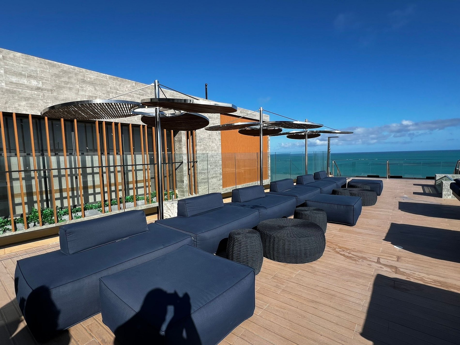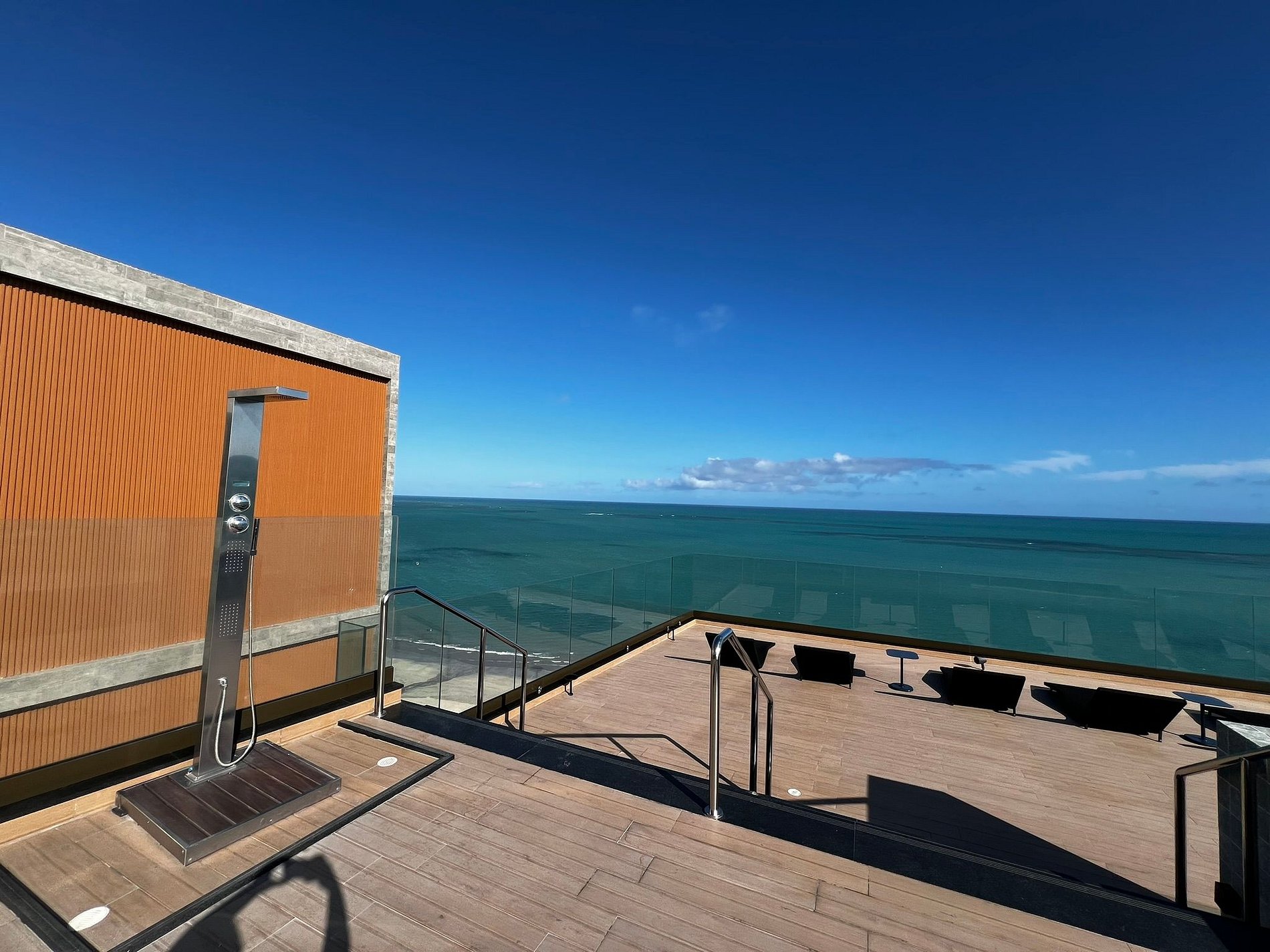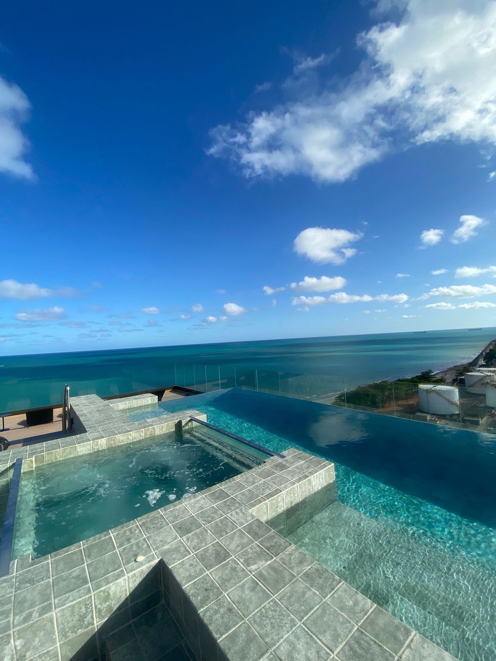 Piscina com borda infinita na cobertura com vista ampla para o mar