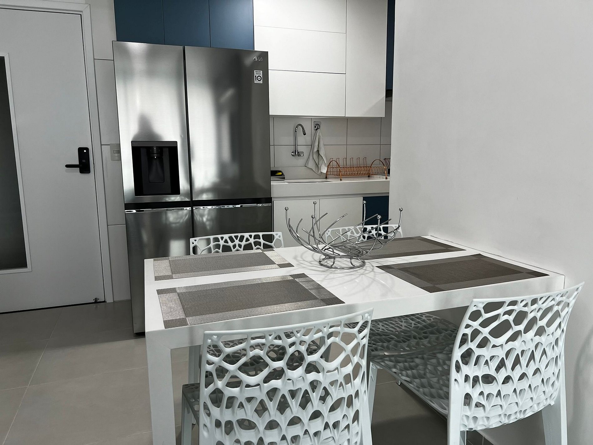 Entrada por fechadura eletrônica, senha enviada 24hrs antes do check-in