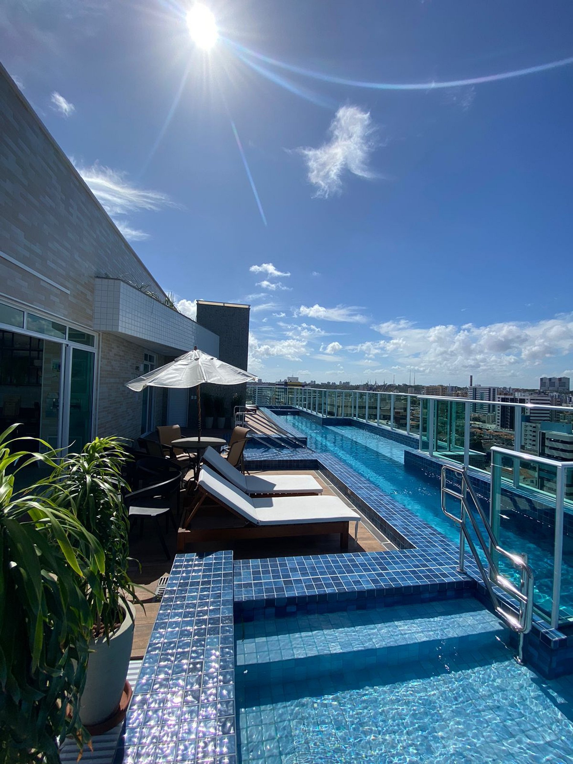 Piscina na cobertura com vista para o mar