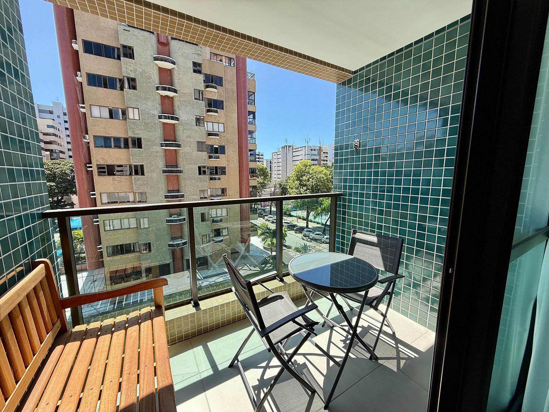 Varanda com mesa e duas cadeiras